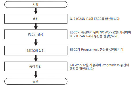 미쓰비시의 Q시리즈 PLC와 오므론 E5CC 온도 조절기를 연결하고 PLC에서 E5CC 온도조절기의 값을 실시간 센싱, 제어 하는 것이 목표이다.